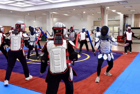 課上,同學們會穿戴全套護甲與頭盔進行組隊練習,留程程笑稱:“雖然頭盔里很悶,但那種沉浸感,像回到古代比武場。”而在高強度對練中,學生的體能、反應與力量也顯著提升。“手更有勁了,步伐也靈活了,以前是兵帶我,現在是我帶兵。”
