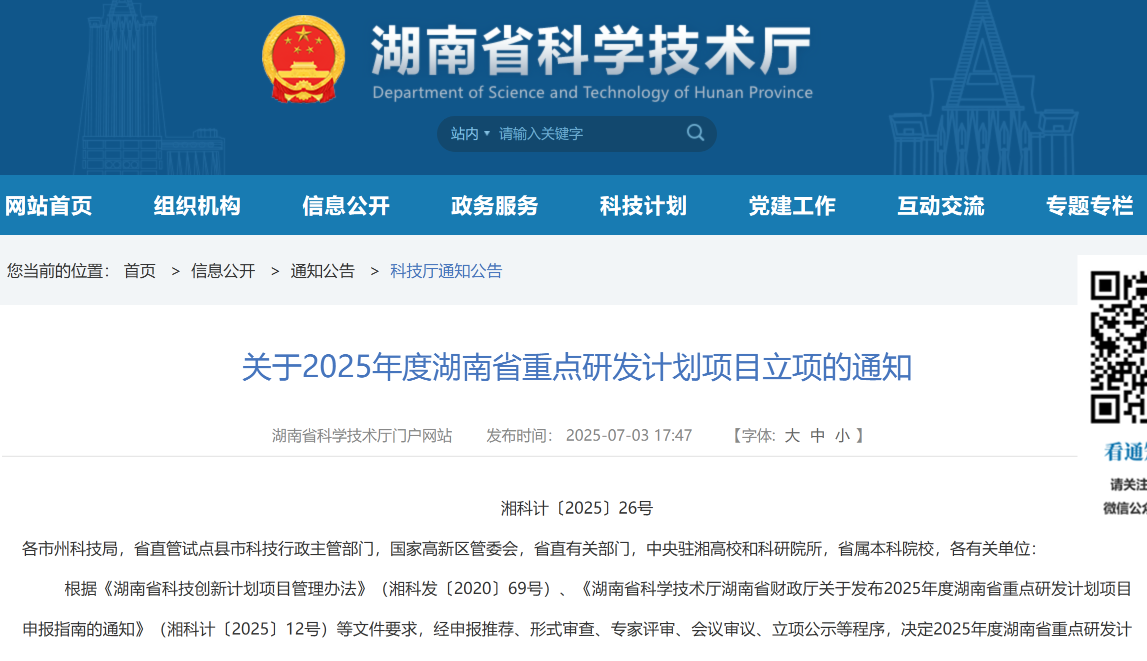 湖南省科學(xué)技術(shù)廳