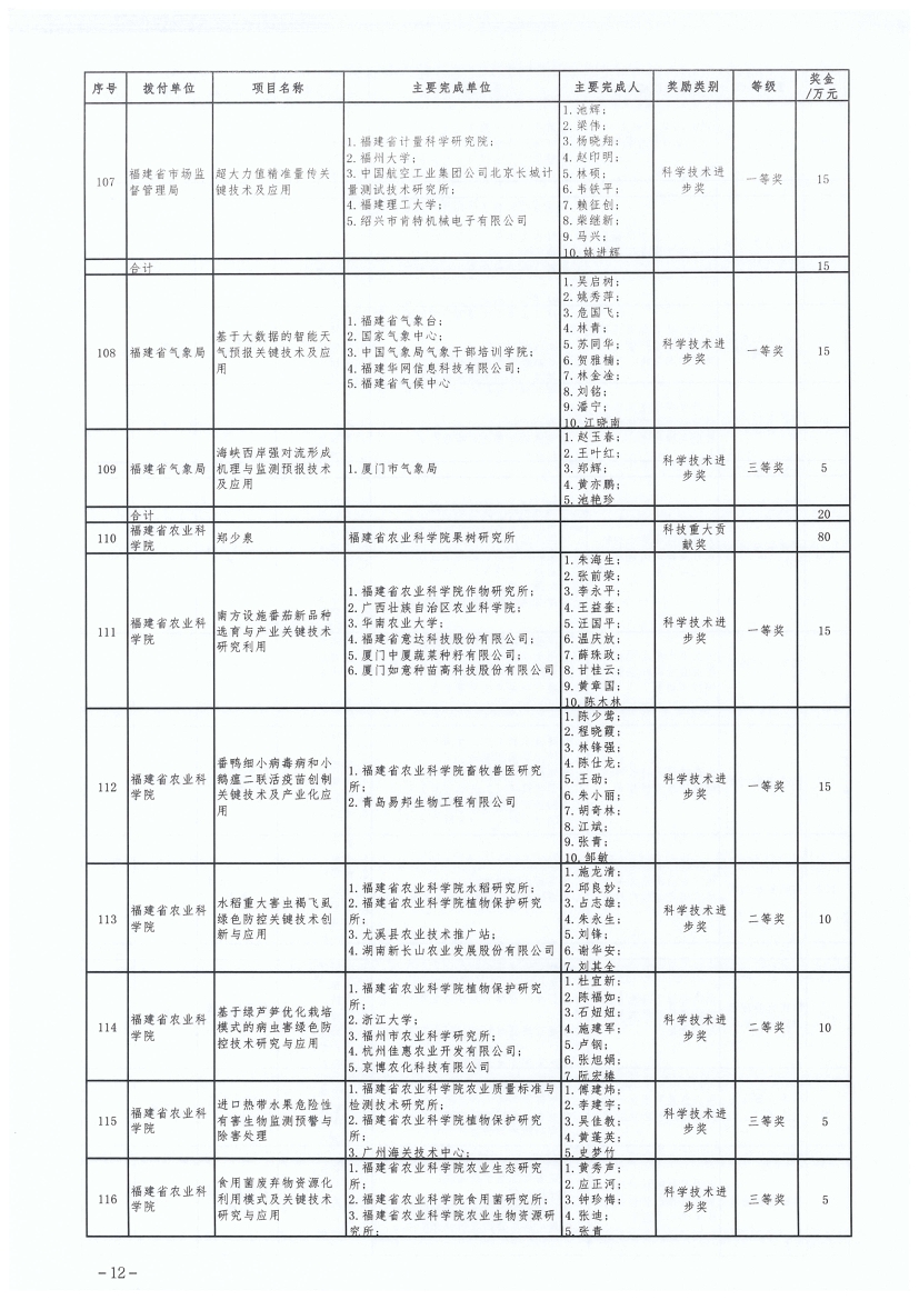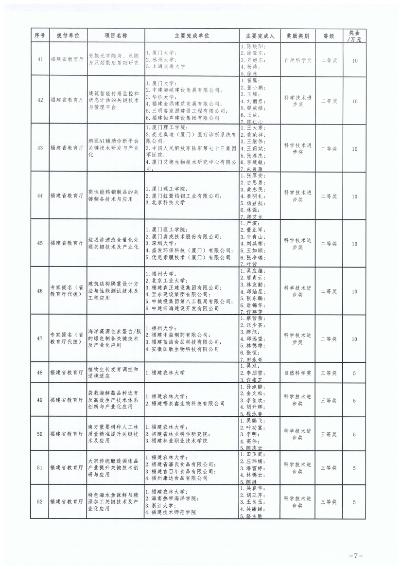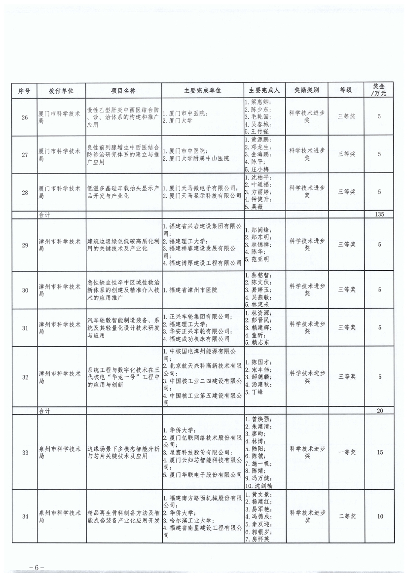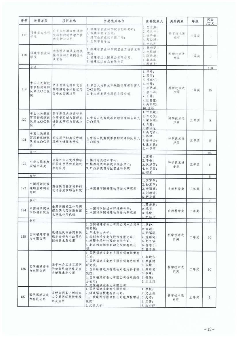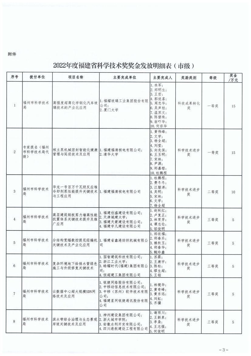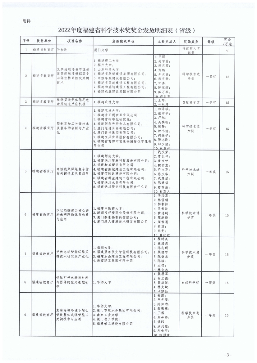 附件:2022年度福建省科學技術獎獎金發放明細表(省級)