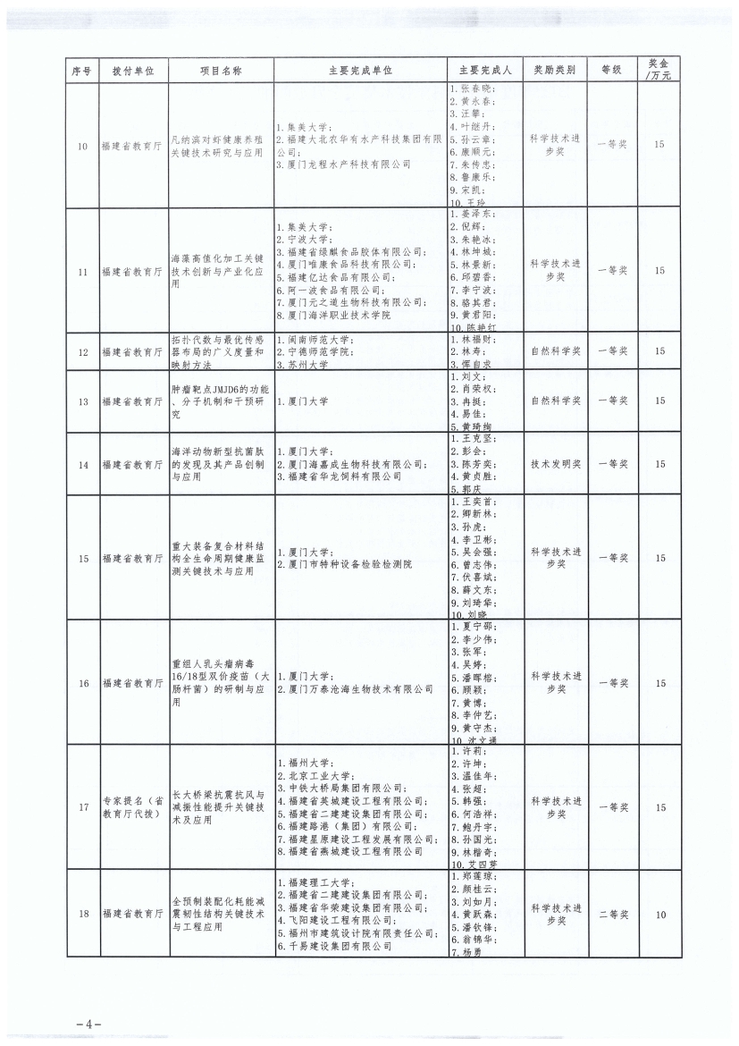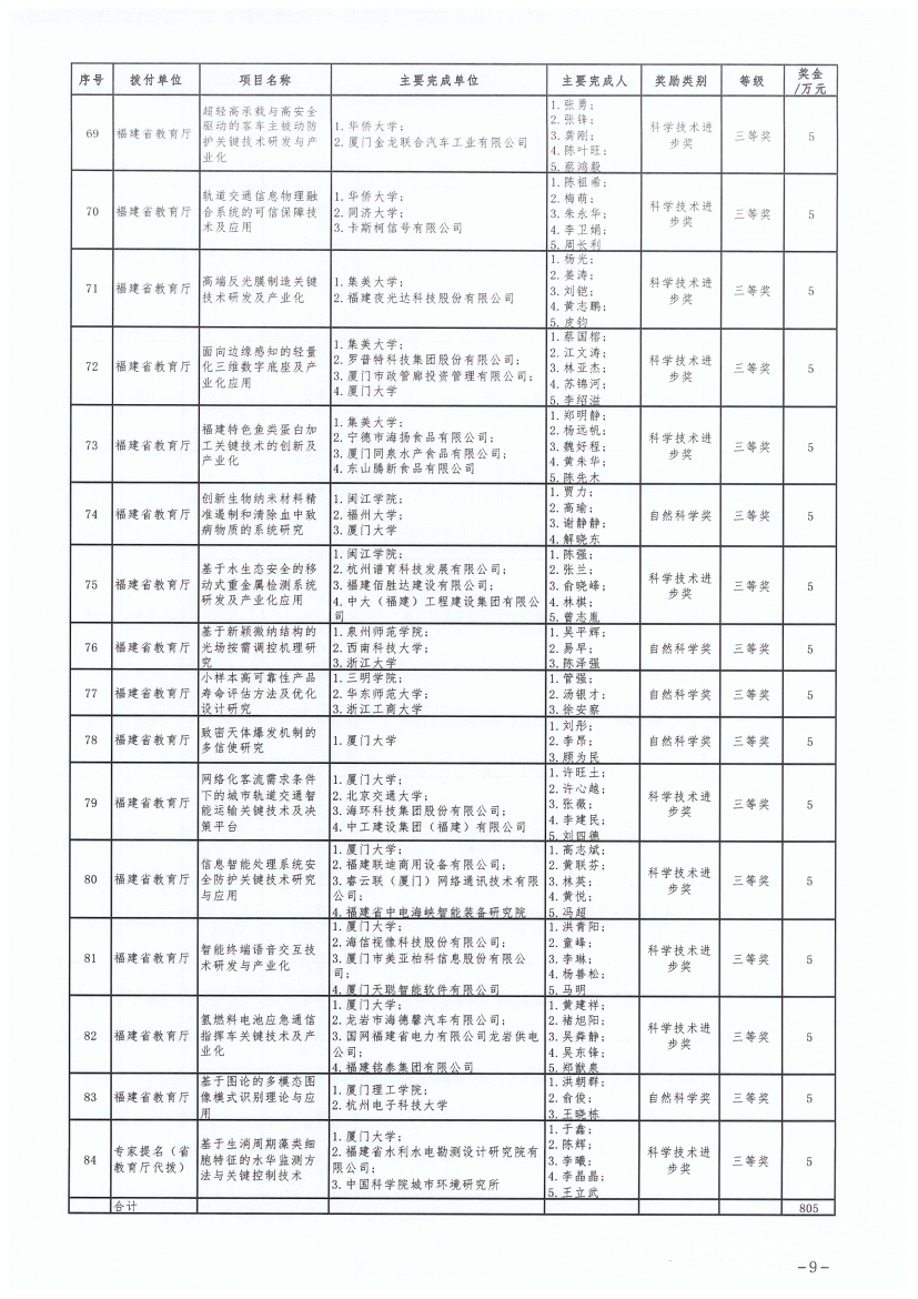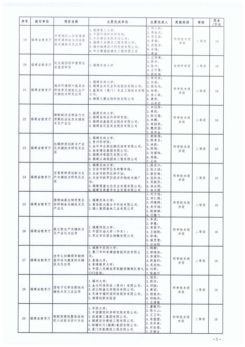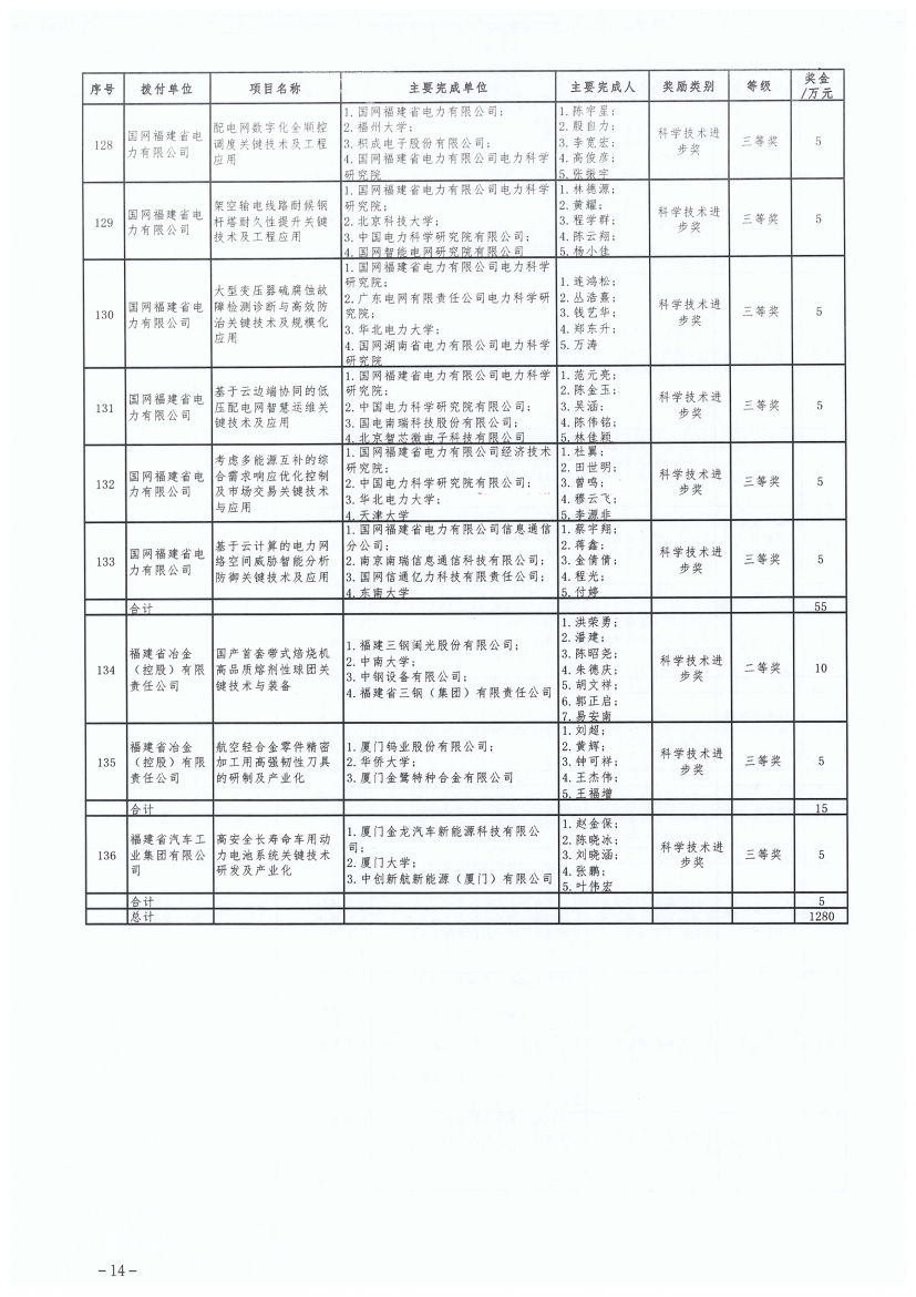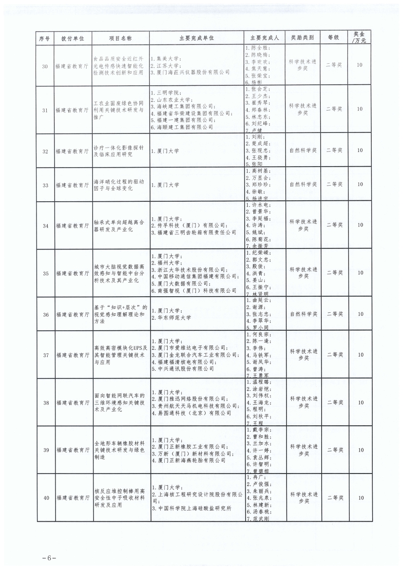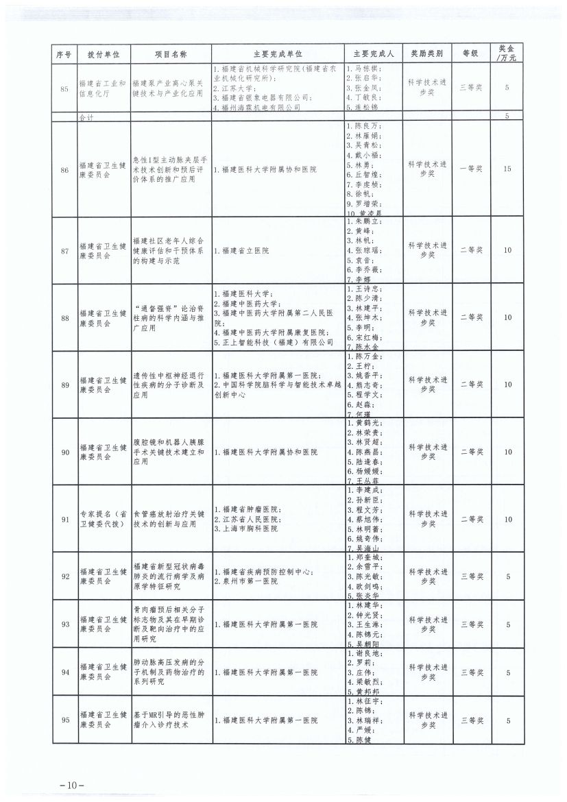 附件:2022年度福建省科學技術獎獎金發放明細表(省級)