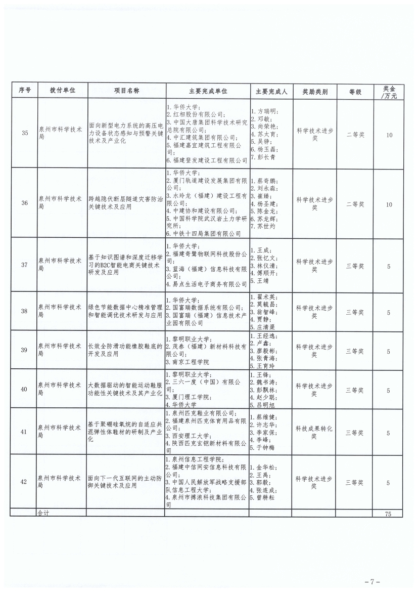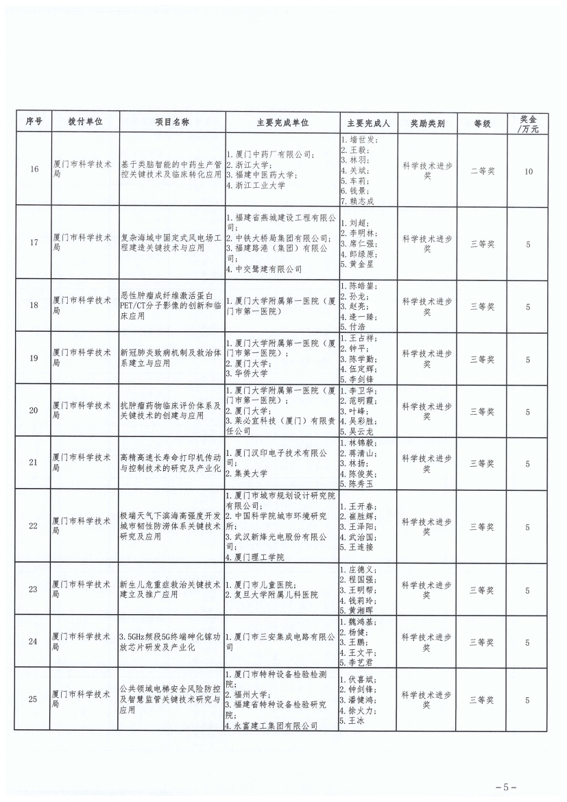 附件:2022年度福建省科學技術獎獎金發放明細表(市級)