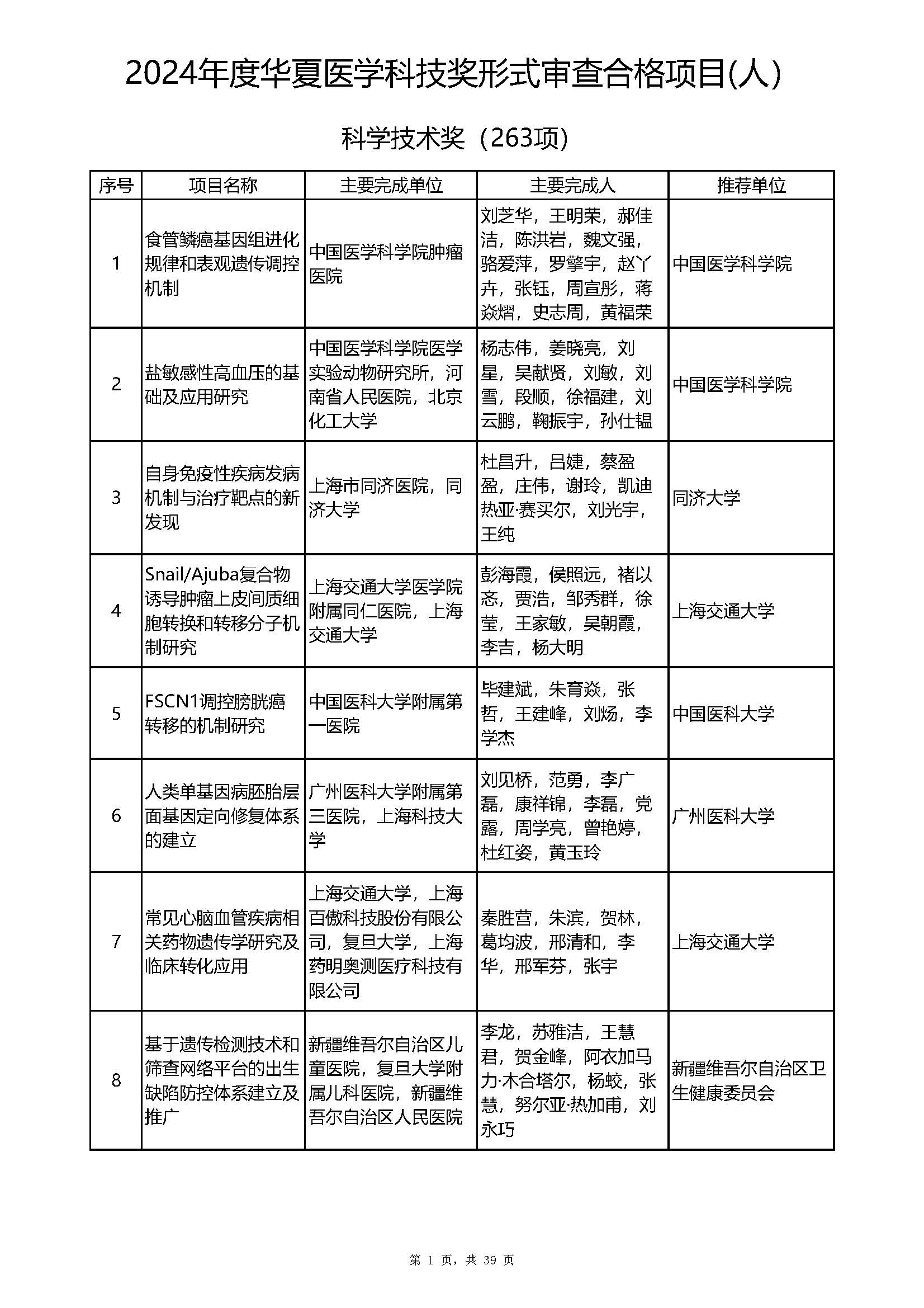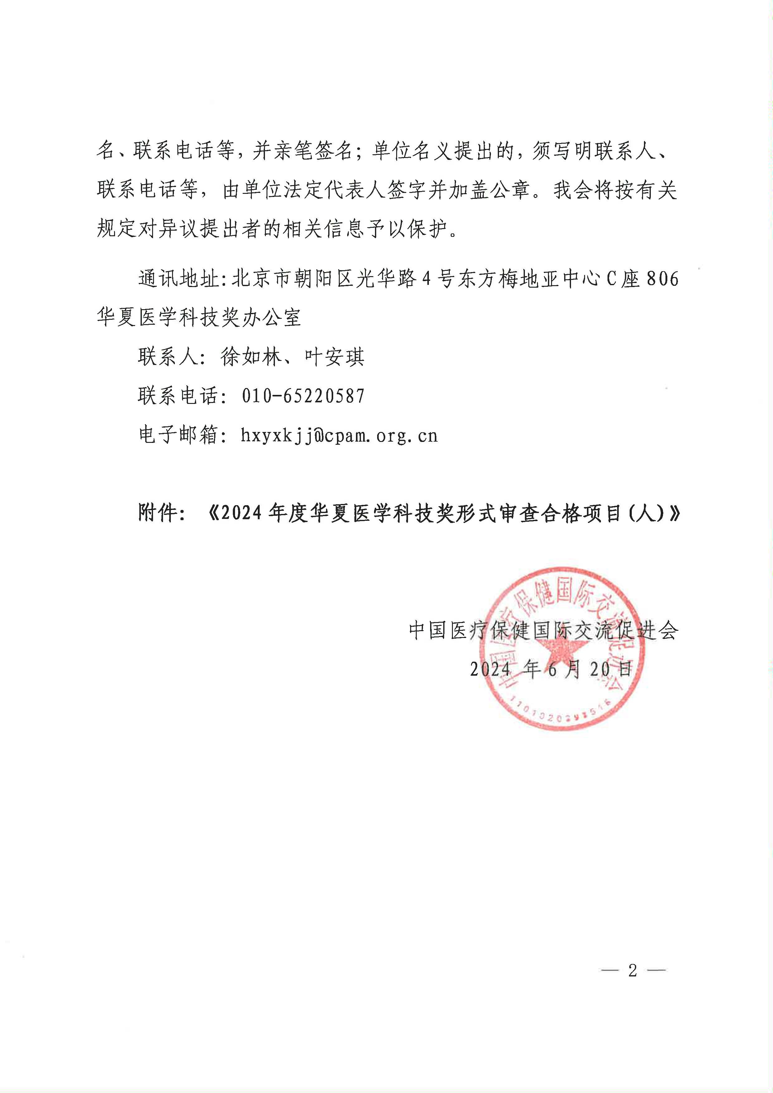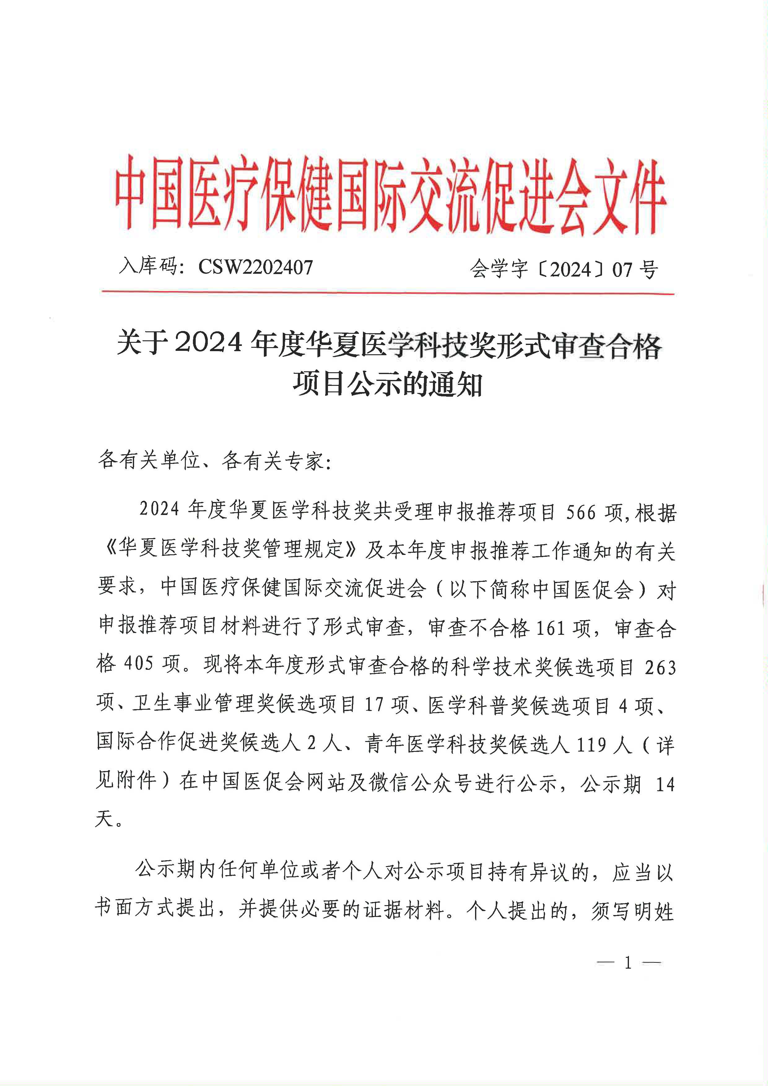 2024年度華夏醫(yī)學(xué)科技獎(jiǎng)形式審查合格項(xiàng)目公示