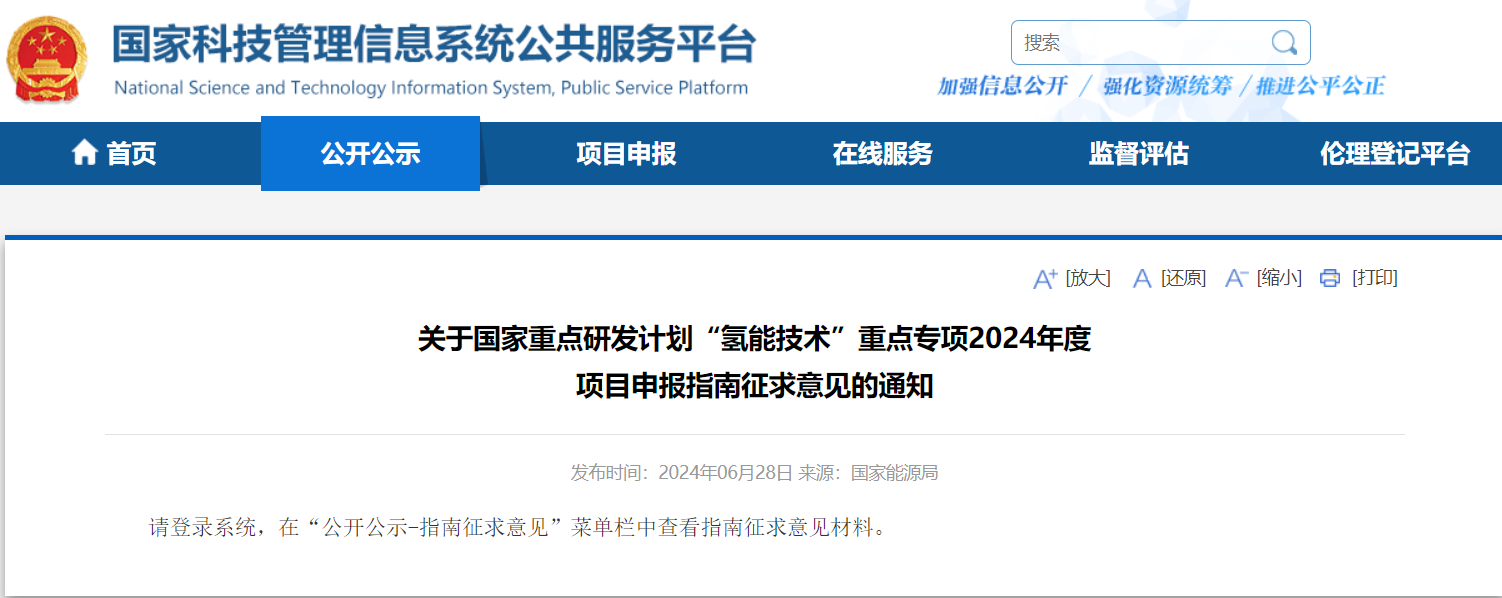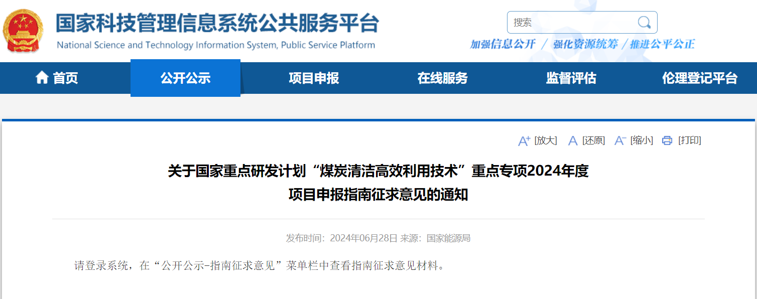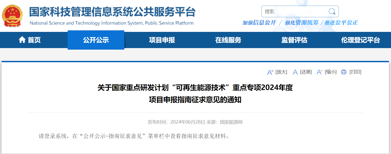 今日,國科管系統發布關于“儲能與智能電網技術”、“氫能技術”、“煤炭清潔高效利用技術”、“可再生能源技術”4個重點專項2024年度項目申報指南征求意見的通知,請登錄系統,在“公開公示-指南征求意見”菜單欄中查看指南征求意見材料。