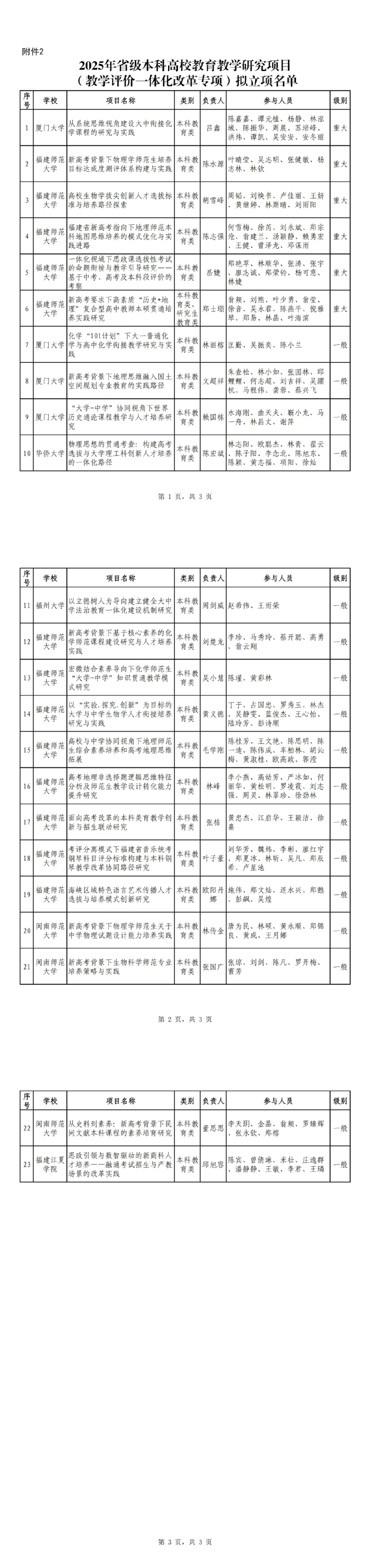 關于2025年福建省本科高校教育教學研究項目擬立項名單的公示