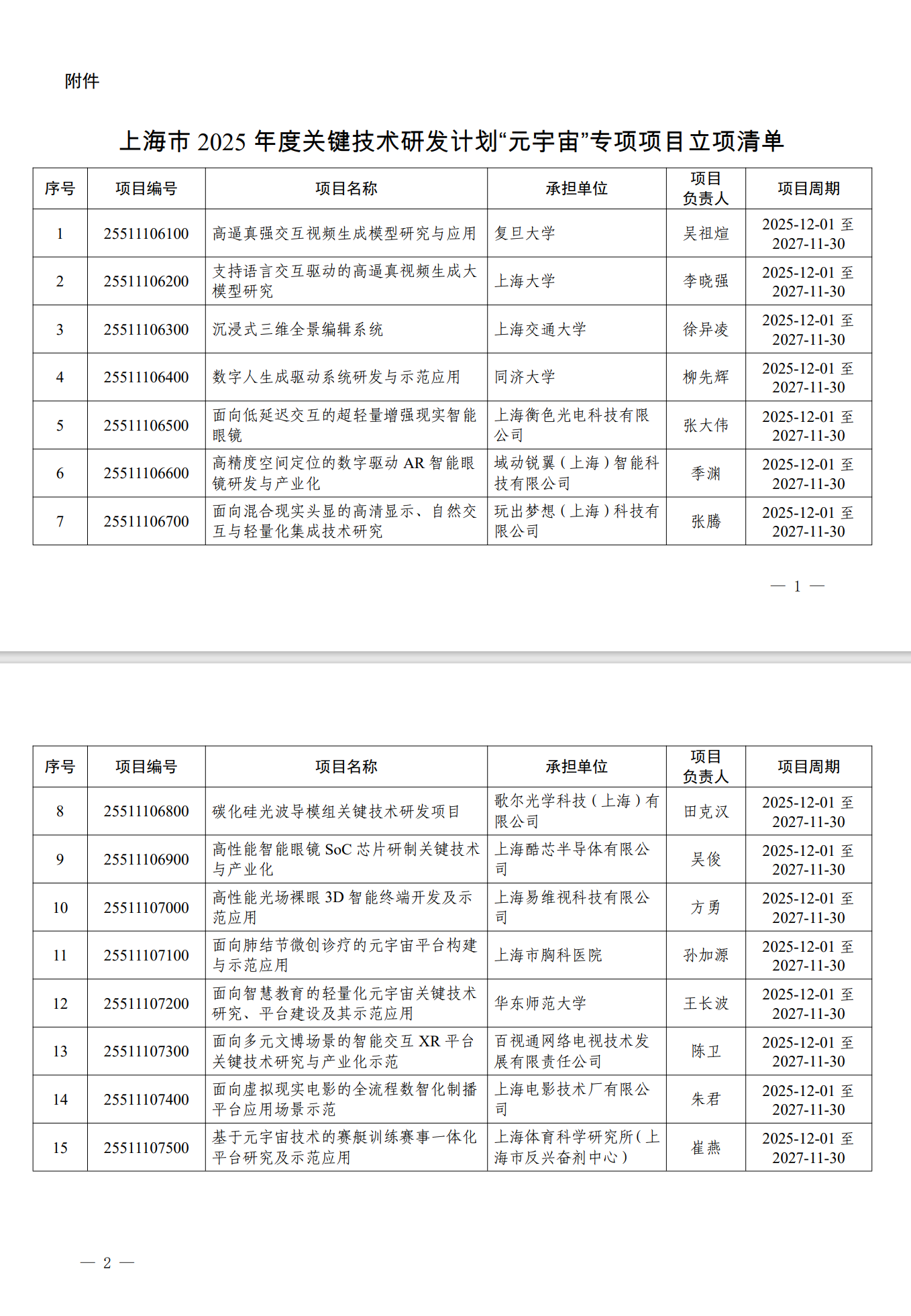 上海市2025年度關鍵技術研發計劃“元宇宙”專項項目立項清單.pdf(點擊下載)