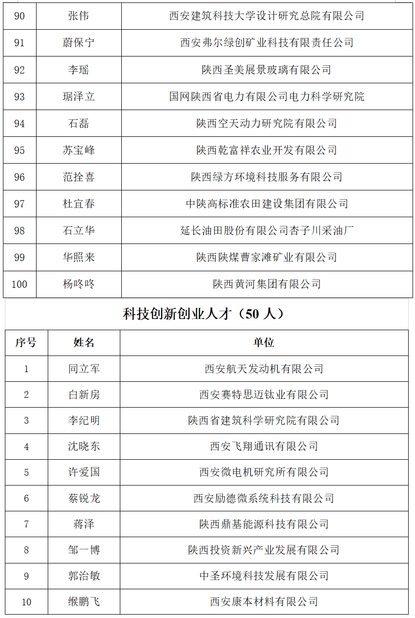 根據《陜西省科學技術廳關于組織推薦2025年中青年科技創新領軍人才、科技創新創業人才及2026年陜西省青年科技新星的通知》(陜科人才函〔2025〕194號),經個人申報、所在單位遴選、主管部門推薦、資格審查、專家評審、會議審定,擬確定西安交通大學杜少毅等100名同志入選2025年陜西省中青年科技創新領軍人才、西安航天發動機有限公司同立軍等50名同志入選2025年陜西省科技創新創業人才、西安交通大學韋安琪等150名同志入選2026年陜西省青年科技新星。
