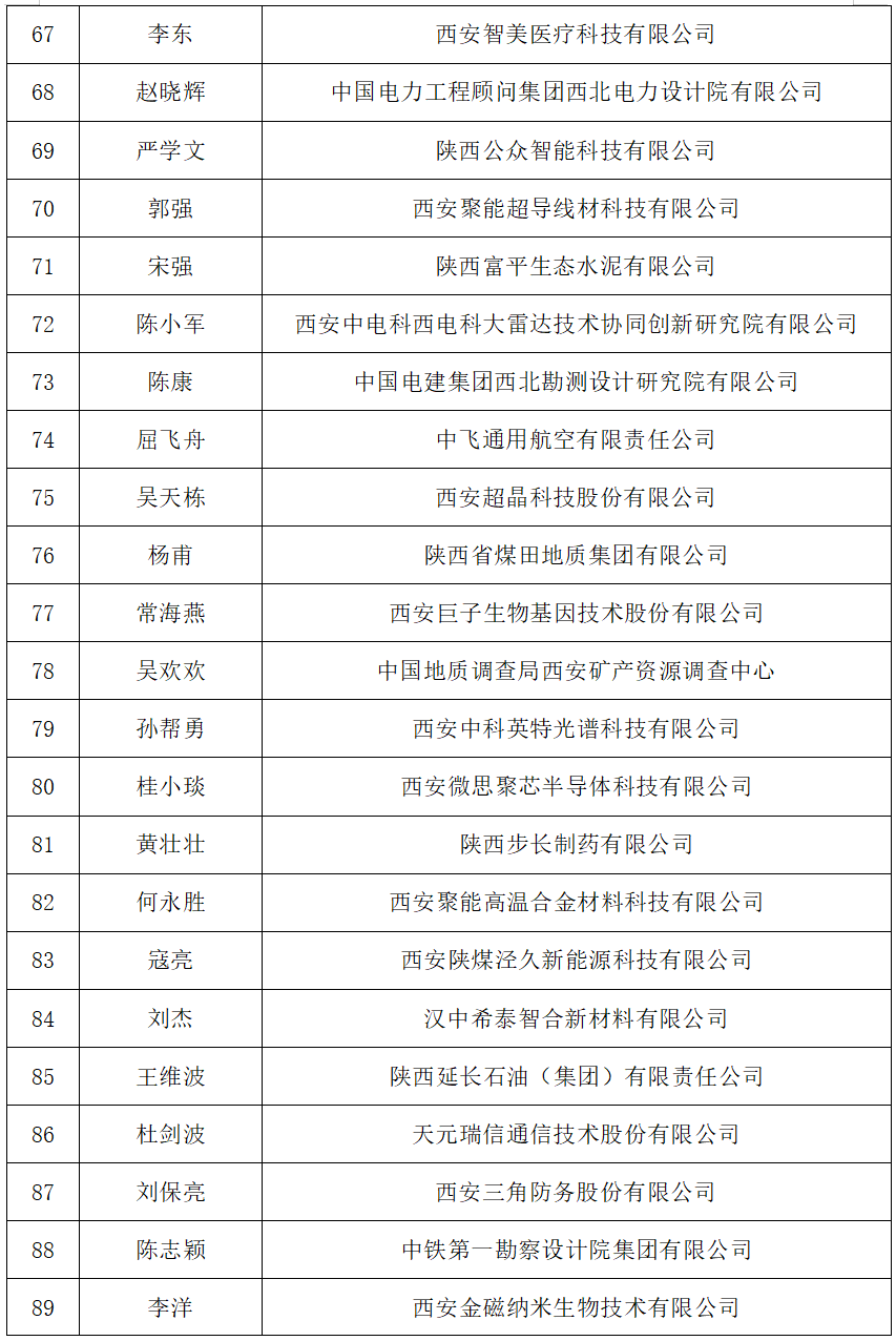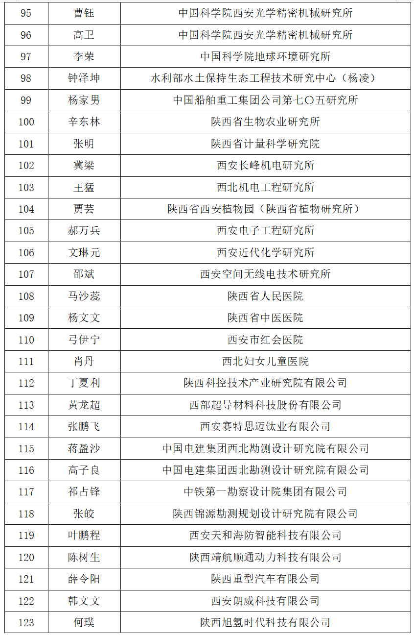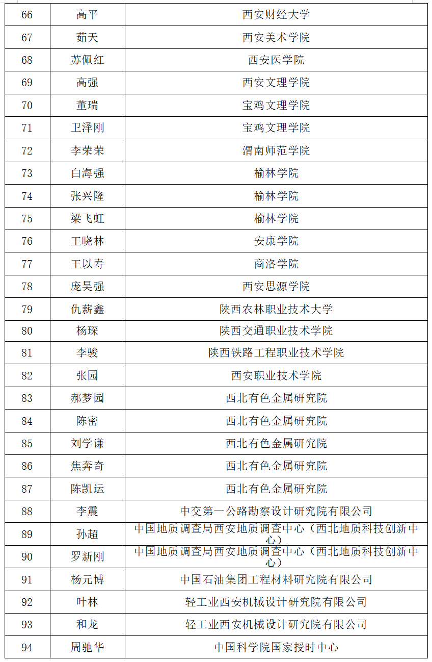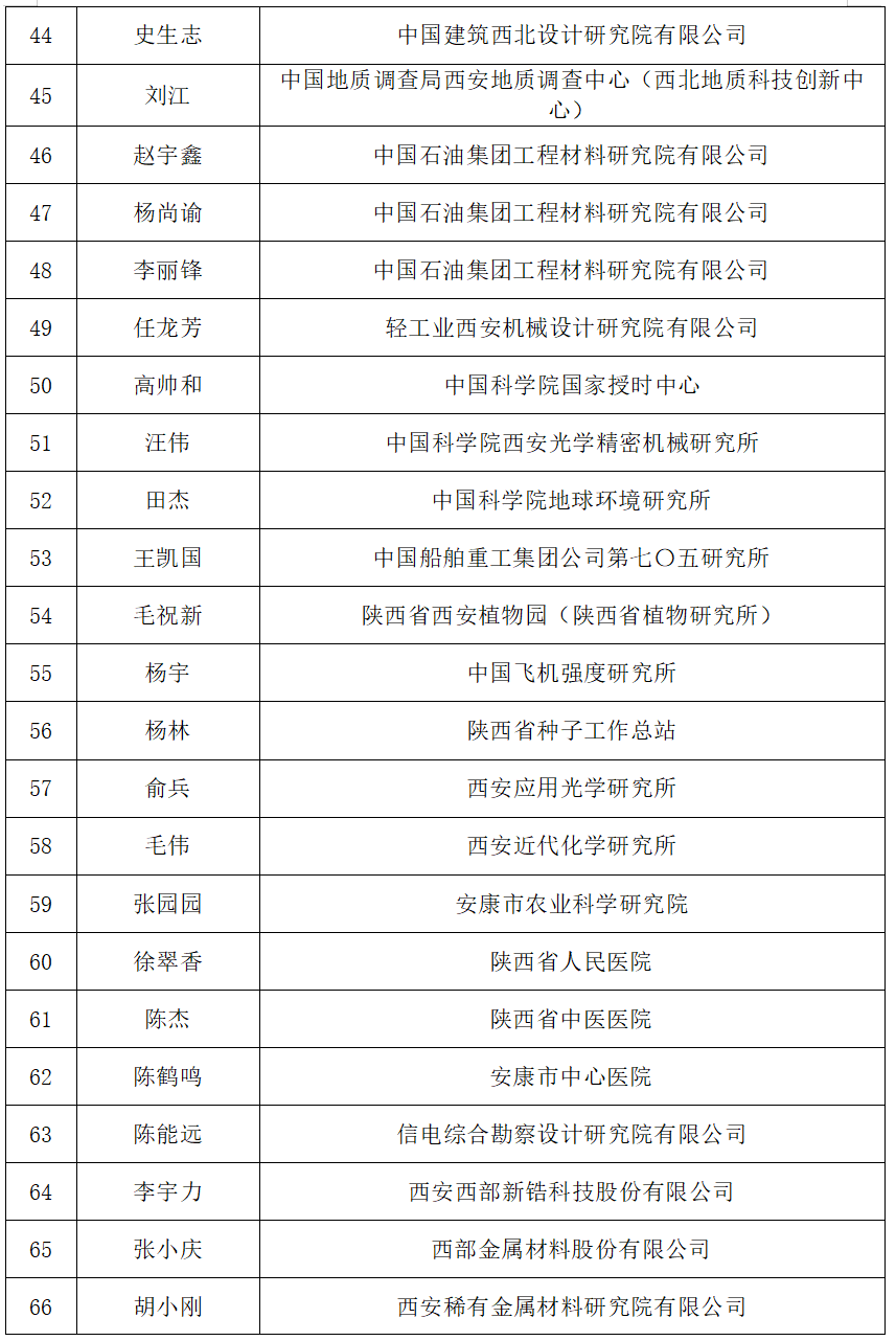 2025年陜西省中青年科技創新領軍人才、科技創新創業人才及2026年陜西省青年科技新星人選公布